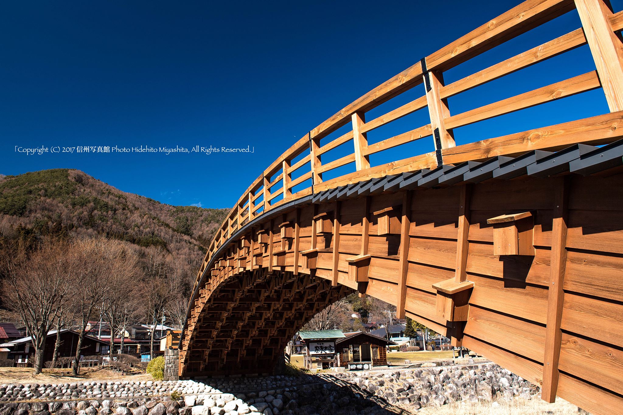 真っ青な冬空と奈良井大橋