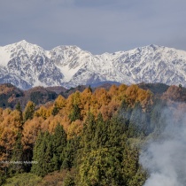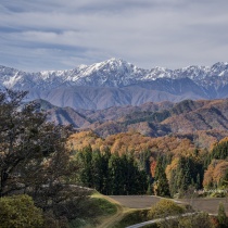 落葉松の黄葉と白馬三山